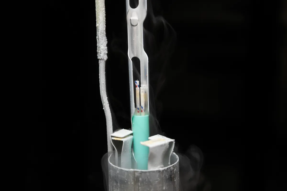 蔡沛學的研究室如同一座小型的「冷凍動物園」,有兩只液態氮罐,在攝氏-196°C的環境中,冷凍瀕危動物黑猩猩、紅毛猩猩,以及石虎和穿山甲的精子。他的團隊也正在研究要用哪種冷凍保護劑、如何一步步從正常體溫降到最終攝氏-196°C的永久保存狀態,以及要如何解凍,才能保持最佳的細胞活性。