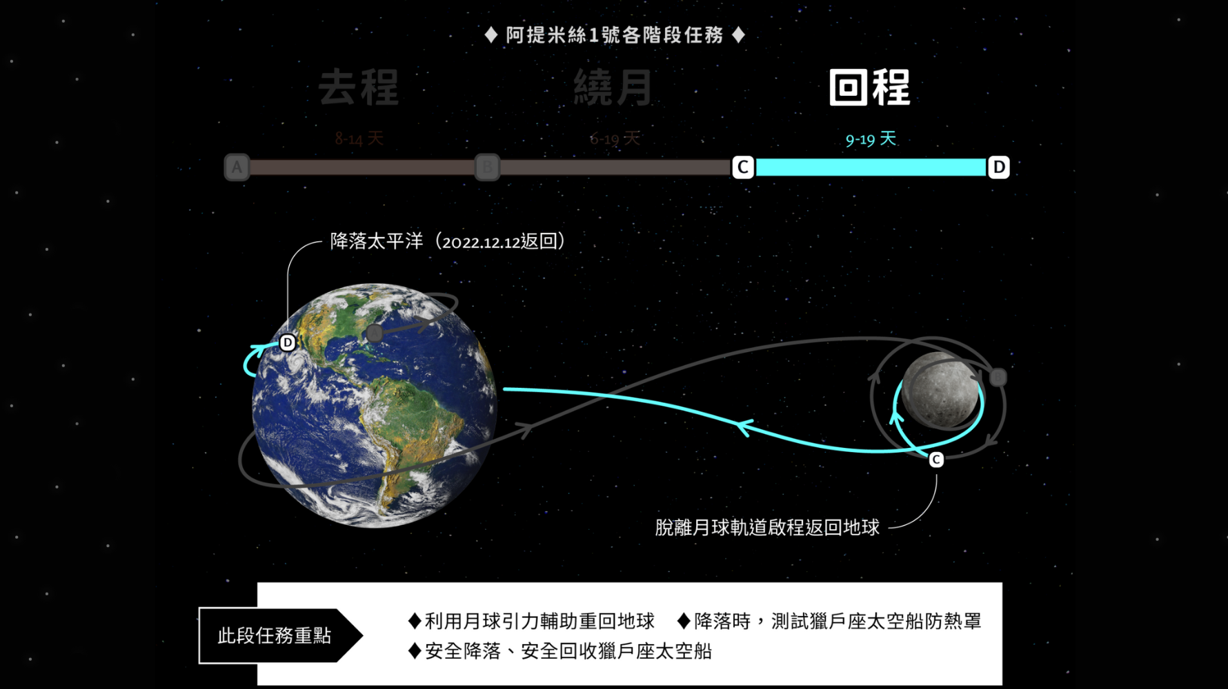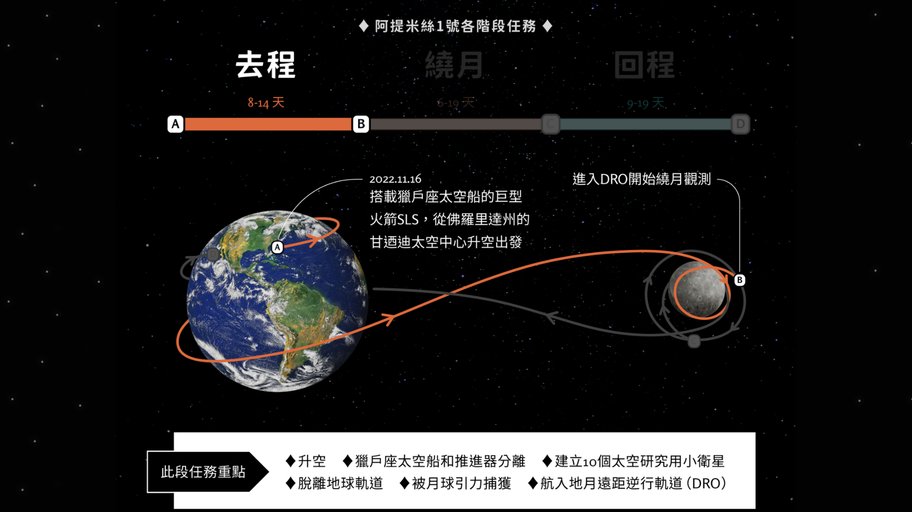 - 阿提米絲2號:預計最快2024年5月執行,任務為載人繞行月球。