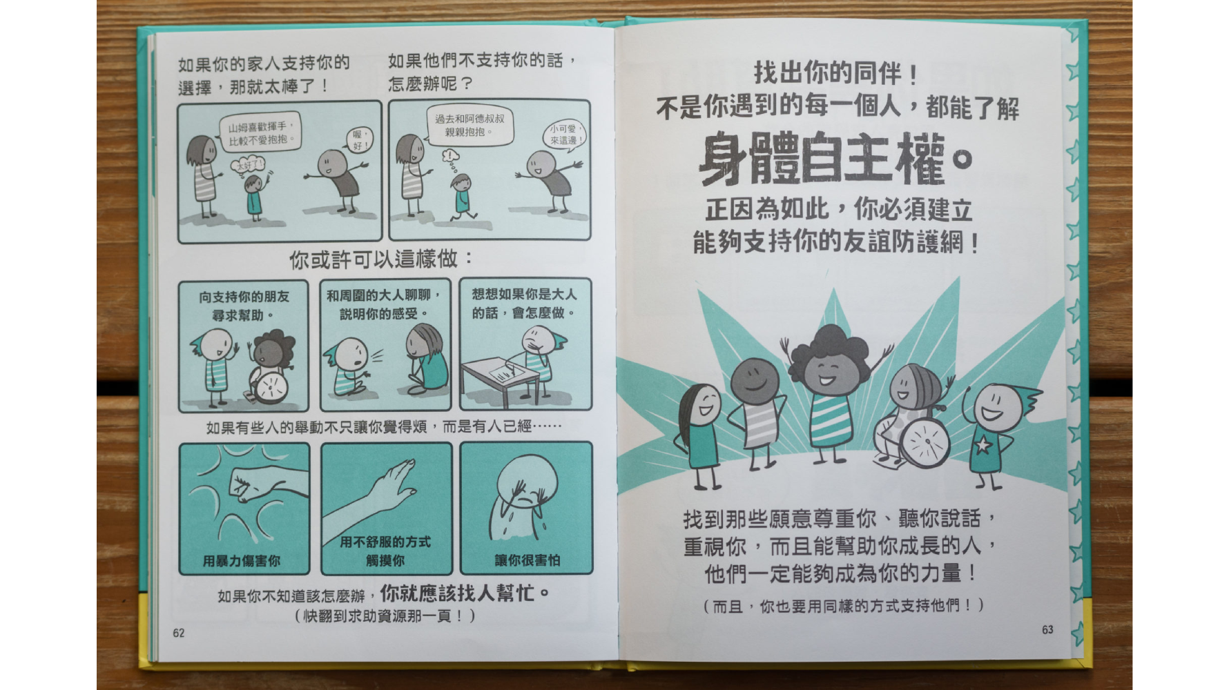 作者也提醒,兒童都該建立一個「安全網」,可以由3至5名成人組成,其中一位最好不是家庭成員,在「安全網」裡的成人不會忽視兒少的求助,也不會認為孩子是在告密,他們會設法提供協助,改變兒少當下的處境。