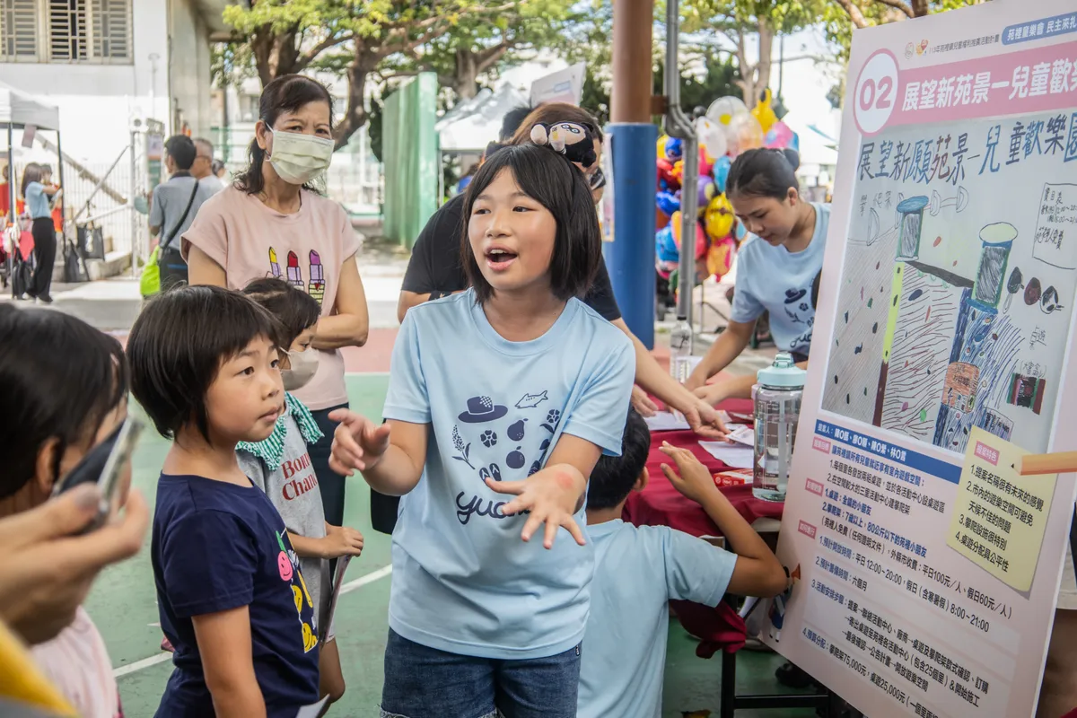 「展望新苑景・兒童歡樂園」的提案攤位人氣頗旺,提案人山腳國小六年級的陳宜甄興奮地向來投票的學生解說,將在空間較大的三里活動中心內設攀爬架,讓苑裡的小朋友就近有室內的遊戲空間,並發給每里2組桌遊,「不再怕日曬雨淋,全鎮的小朋友都可以玩!」
