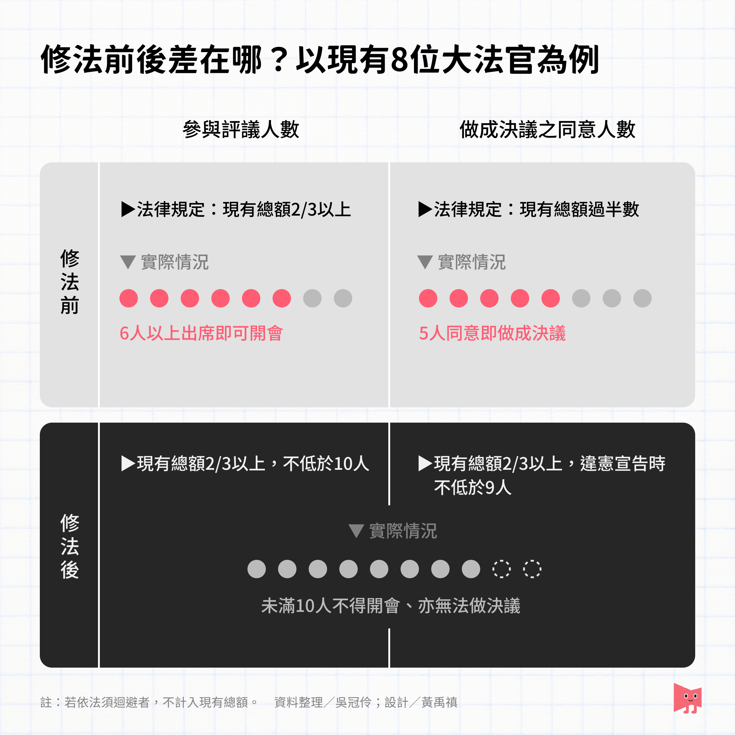 8張圖表理解《憲法訴訟法》修法影響──空缺的大法官、可能凍結的憲法法庭⋯⋯