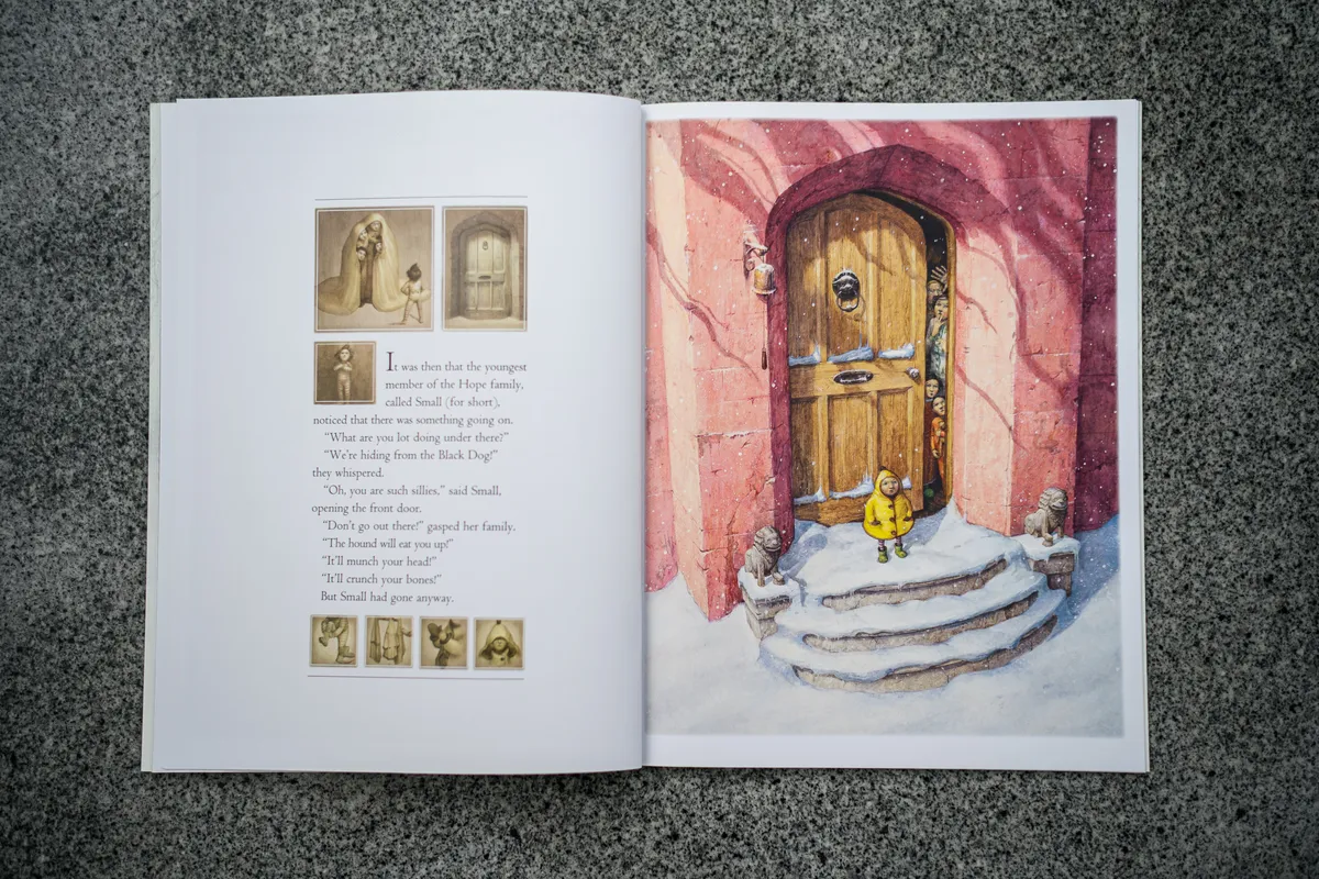 只有家中最小的孩子,她無所畏懼地打開了門,站在被家人形容會咬人的巨大黑狗前。