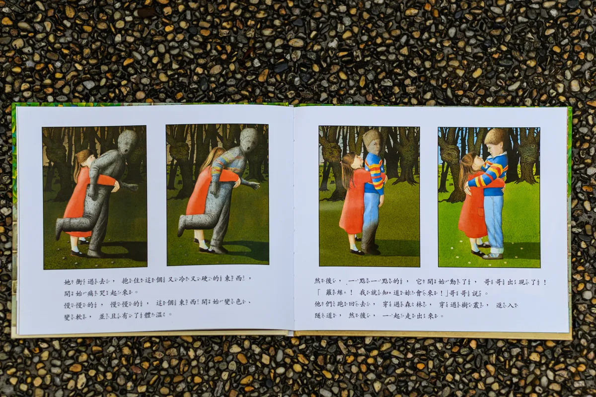 家喻戶曉的繪本作家安東尼・布朗(Anthony Browne)總是創作帶有隱喻的故事。《穿過隧道》展現男孩與女孩間傳統的性別刻板模式,男孩總是可以大聲嘻笑,而女孩總是靜靜地窩在一角閱讀。男孩以嚇唬妹妹為樂,頑皮地跑進一道狹長的隧道內探險,還對著不敢跟著進入的妹妹語帶恐嚇地說:「不要這麼怕死,只有小孩子才會這麼想⋯⋯」