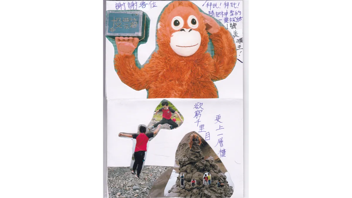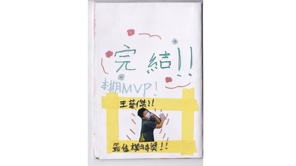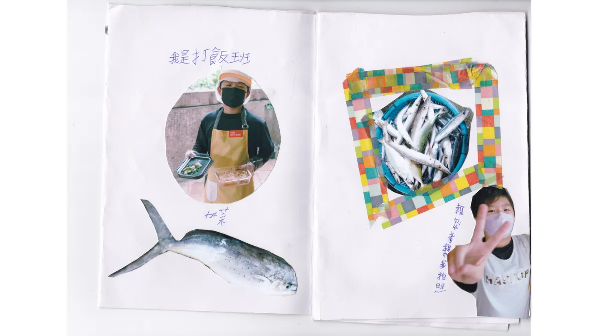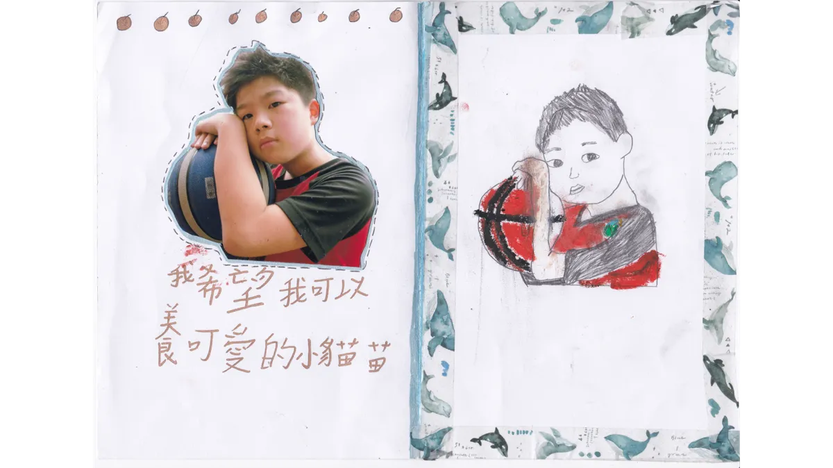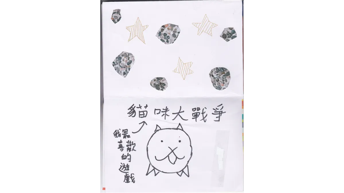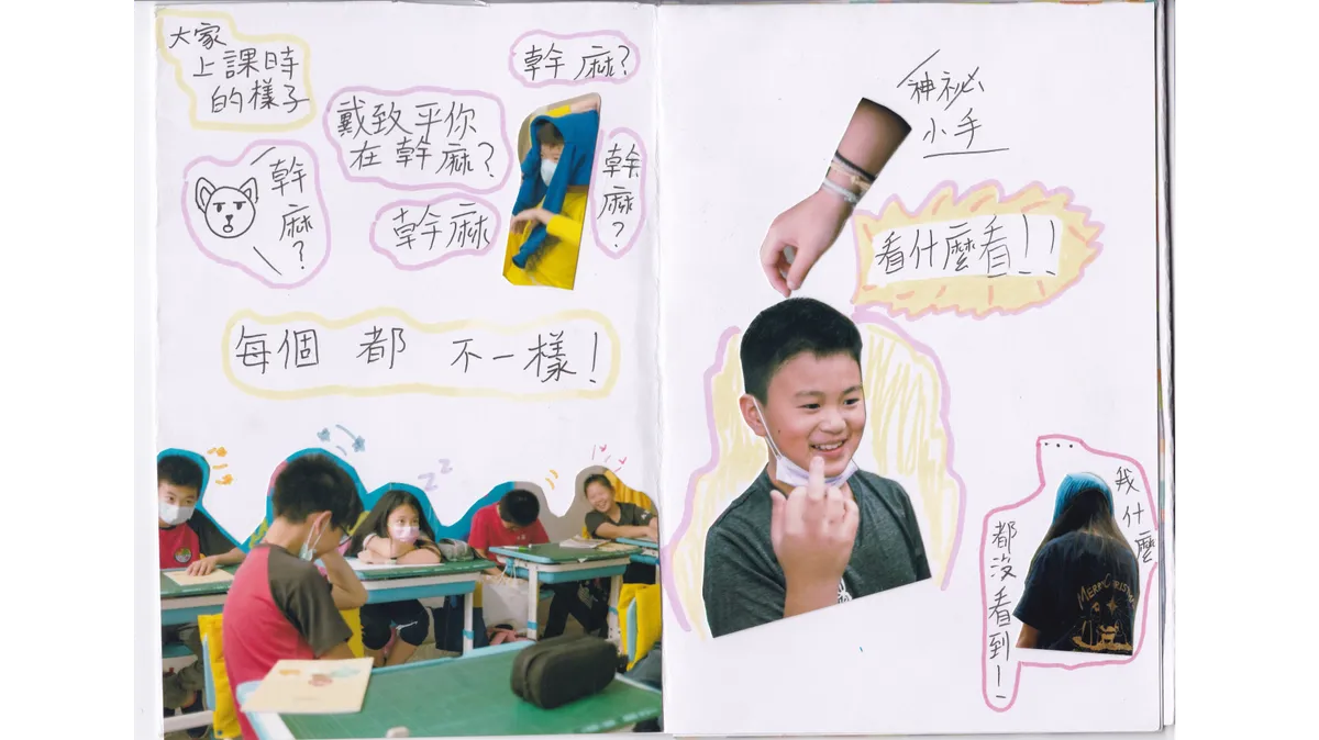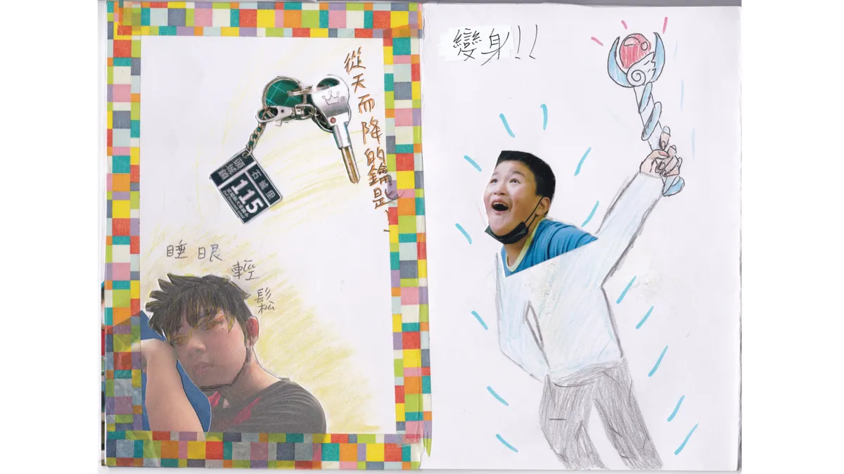 他對拼貼(collage)也有很大的熱忱,製作相片書時,即使下課了都欲罷不能, 仍埋著頭繼續創作。他的系列作品「奇葩檔案」獲得班上的大力稱讚。