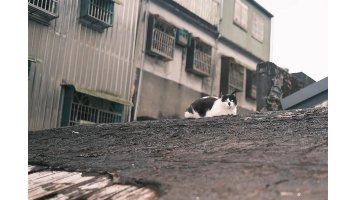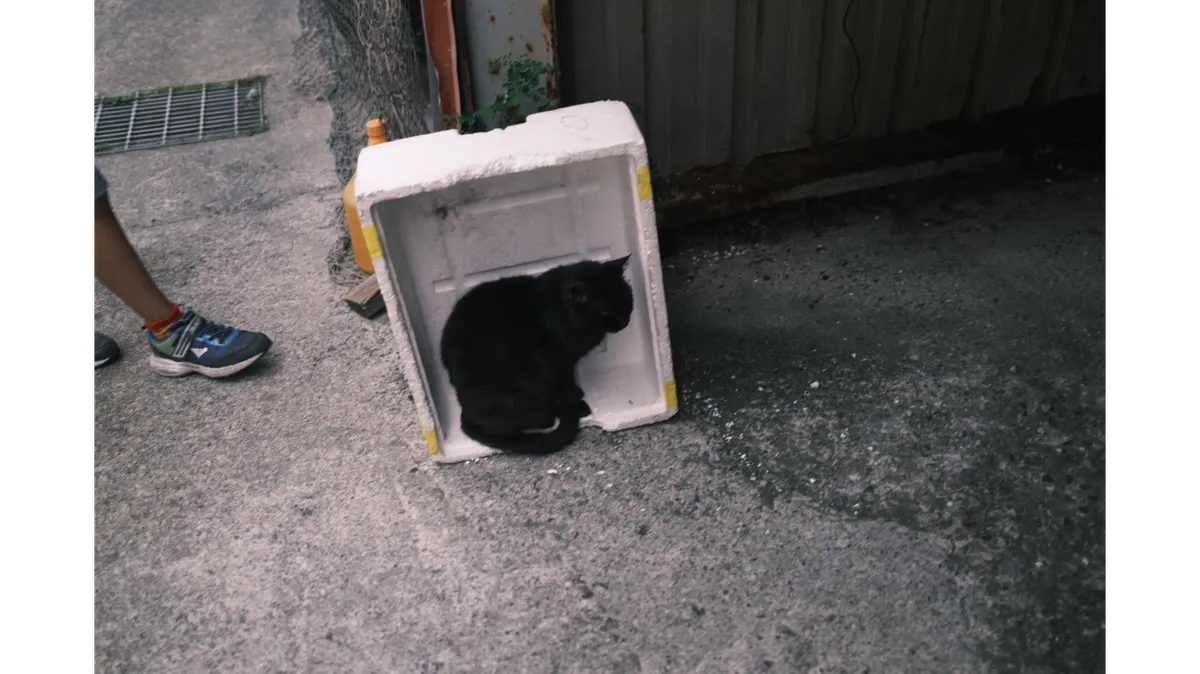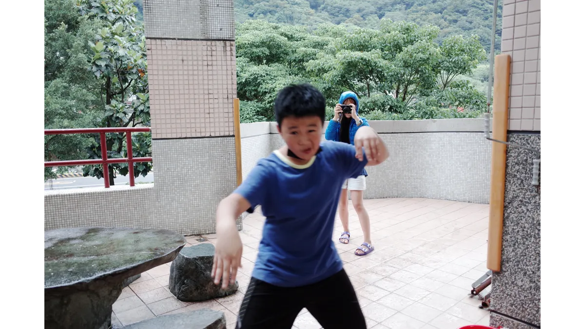 帶他到社區裡頭練習拍照,拍攝主題是他最期待的「與貓相處」。他專心地撫摸小橘與小花,也不忘拍下兩隻貓吃食的模樣。第一次見到他這樣專注,一次一次重新尋找角度、尋找貓臉的焦點,一點也不見平常的急躁。然後,他也拍下了在大溪漁港工作的阿嬤,原本按了一次快門就失去耐心,阿嬤一旁叮嚀:「拍照要有耐心!看哪個角度最好!」