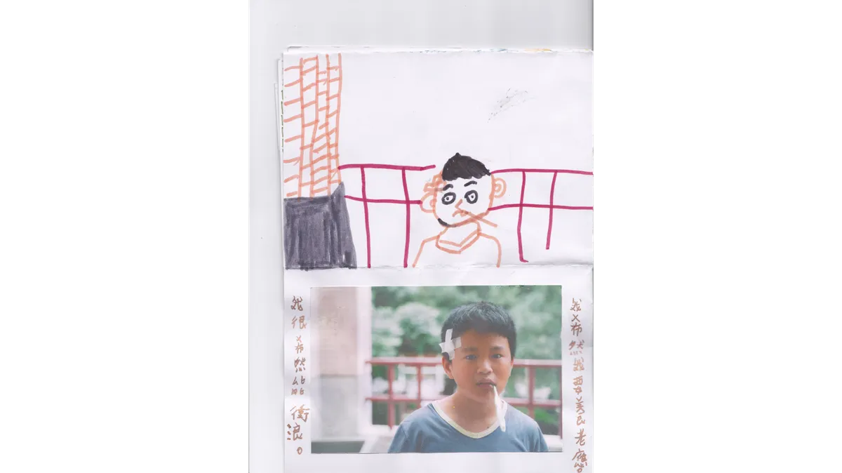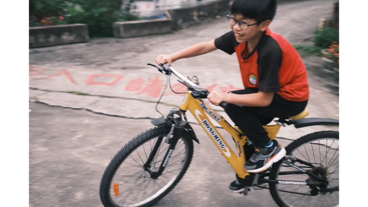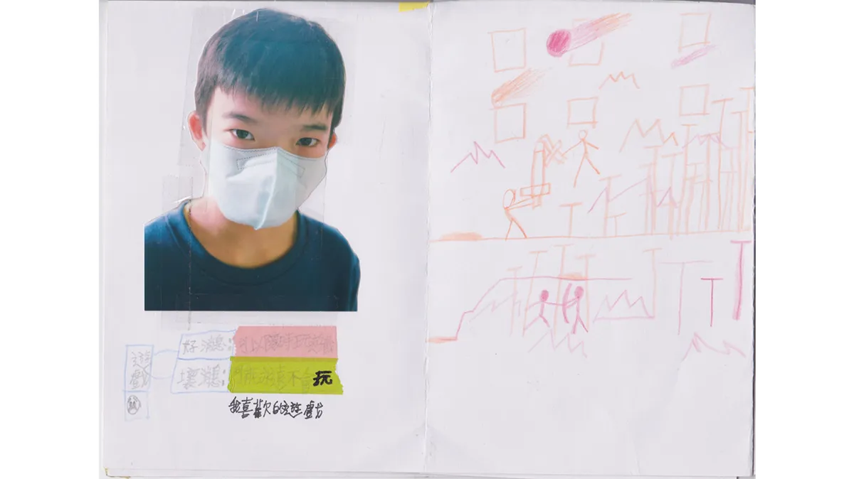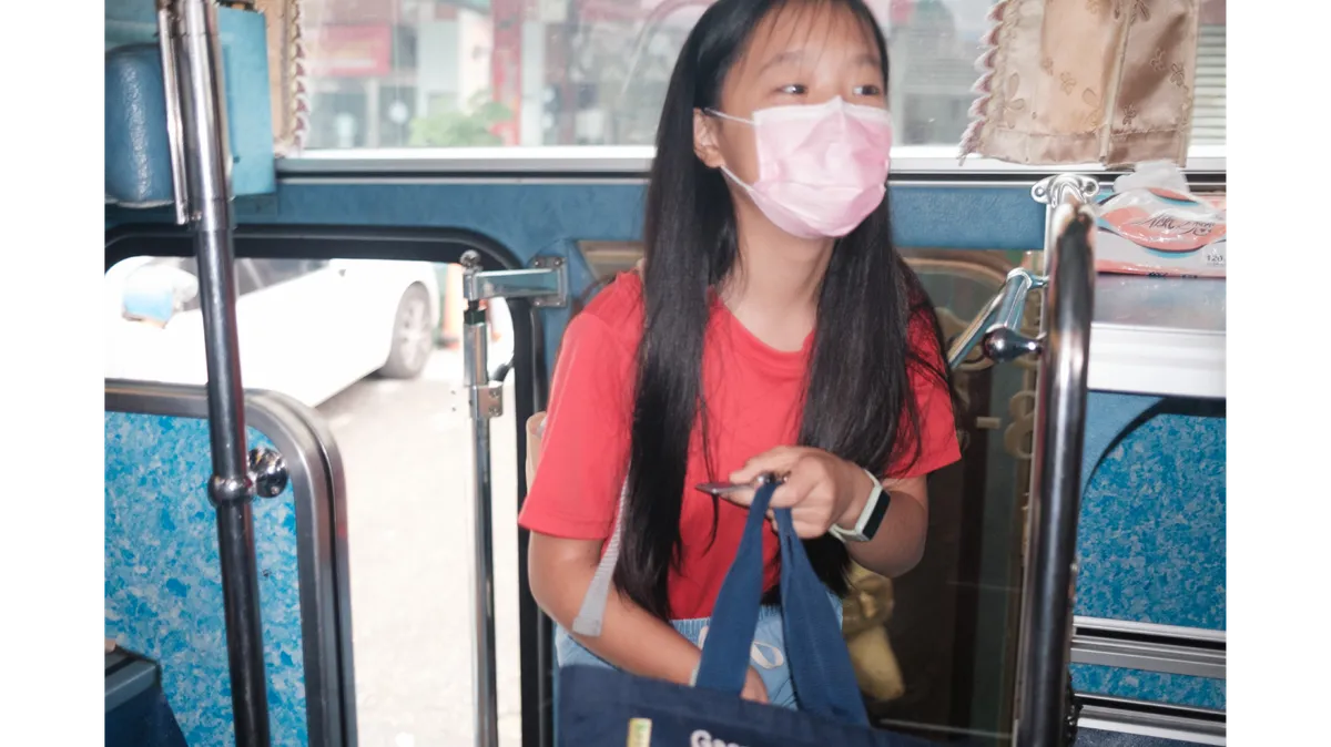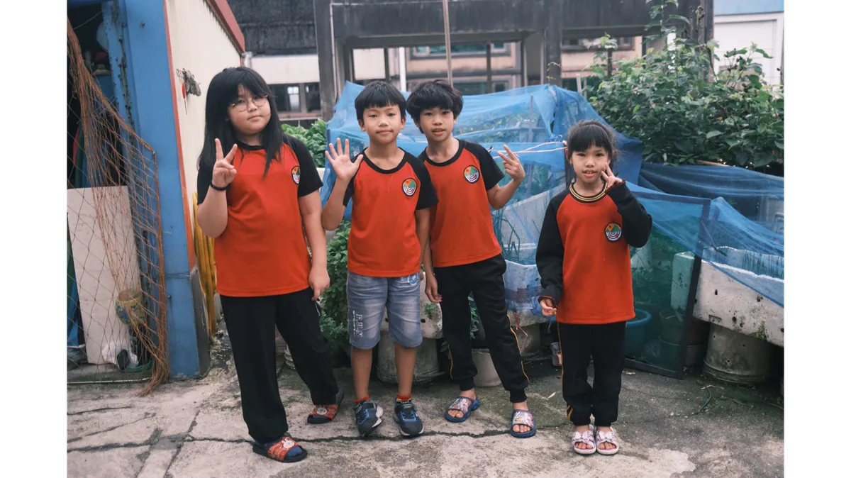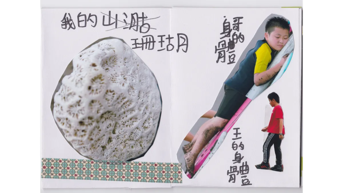 瀠霈對組織故事很有想法,只要手邊有素材,她就能即興地在相片書中自成一個宇宙。她的性格獨立、早熟,時常扮演照顧同學的角色。她的鏡頭對準了校園中的生活、放學後帶同學練習腳踏車的時刻、鄰居家受傷的狗,以及每個大里小孩都熱切注視的貓咪。刻著大里國小原校地址的紀念鑰匙圈放在她的課桌上,她期待回去後能繼續記錄校園生活。