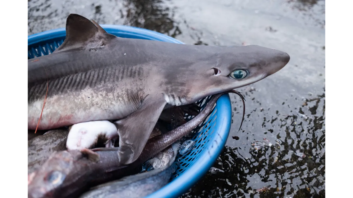 星期天的大溪漁港有大批的遊客湧入,見藝傑媽媽還在攤位上忙碌,我們先在漁港四處走踏。雜沓的人潮,只能快速地抓拍眼前風景──海裡漂浮的垃圾、防波堤旁振翅飛起的海鷗、岸邊的招潮蟹、山坡上的流浪貓家庭、漁船上處理櫻花蝦的外籍漁工,還有一家家撐起紅藍大雨傘的攤位。我向攤販老闆說明來意,鼓勵藝傑詢問老闆的意願後,拍下不同的魚種,也向老闆請教魚種的名字與特色。