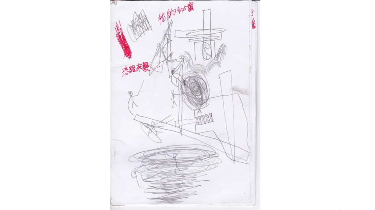 致平的體型削瘦,腦子裡卻裝滿想法,他說話有時跳躍,有時緩慢,旁人要用多一點的等待才能接上線理解。但圖像的表達,剛好讓他得以傳遞出內心的許多電波,他看出去的視角獨特,著迷於溢出的線條、突出的色塊,影像宇宙裡有自己的節奏。製作相片書時,儘管進度不如預期,只要有人在旁支持、傾聽,他就願意耐心地圖畫、書寫,將腦中頻率訴諸筆畫。
