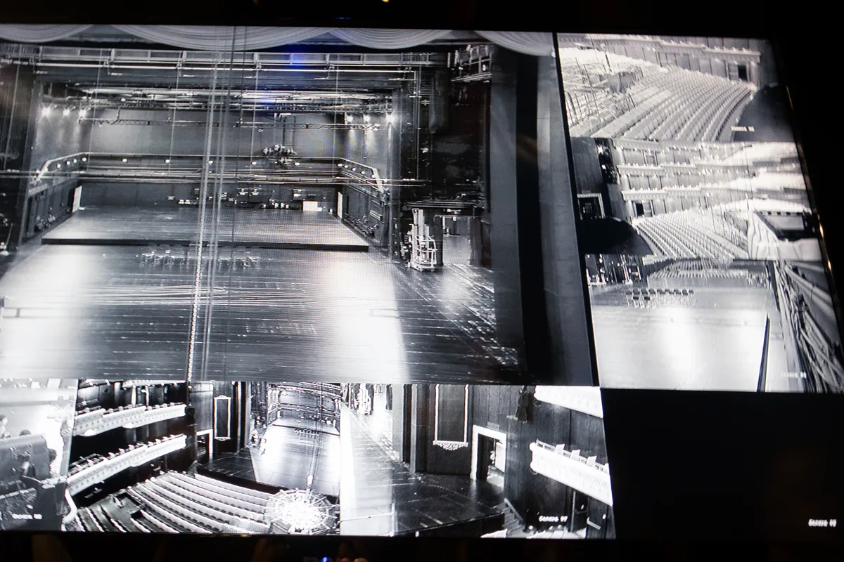 一齣戲劇之所以成功,不僅仰賴幕前人員的努力,還有幕後人員在崗位上各自做好自己分內工作。我們想捕捉每一個舞台幕後的設施,觀察上面的燈管如何照映在演員身上,走在廊道上,在比水晶吊燈更高的地方,透過紅色的鐵網,映照著幕後人員控制的燈光,看見舞台隨著光線不停變化,此刻我們所在的位置是VVIP席。