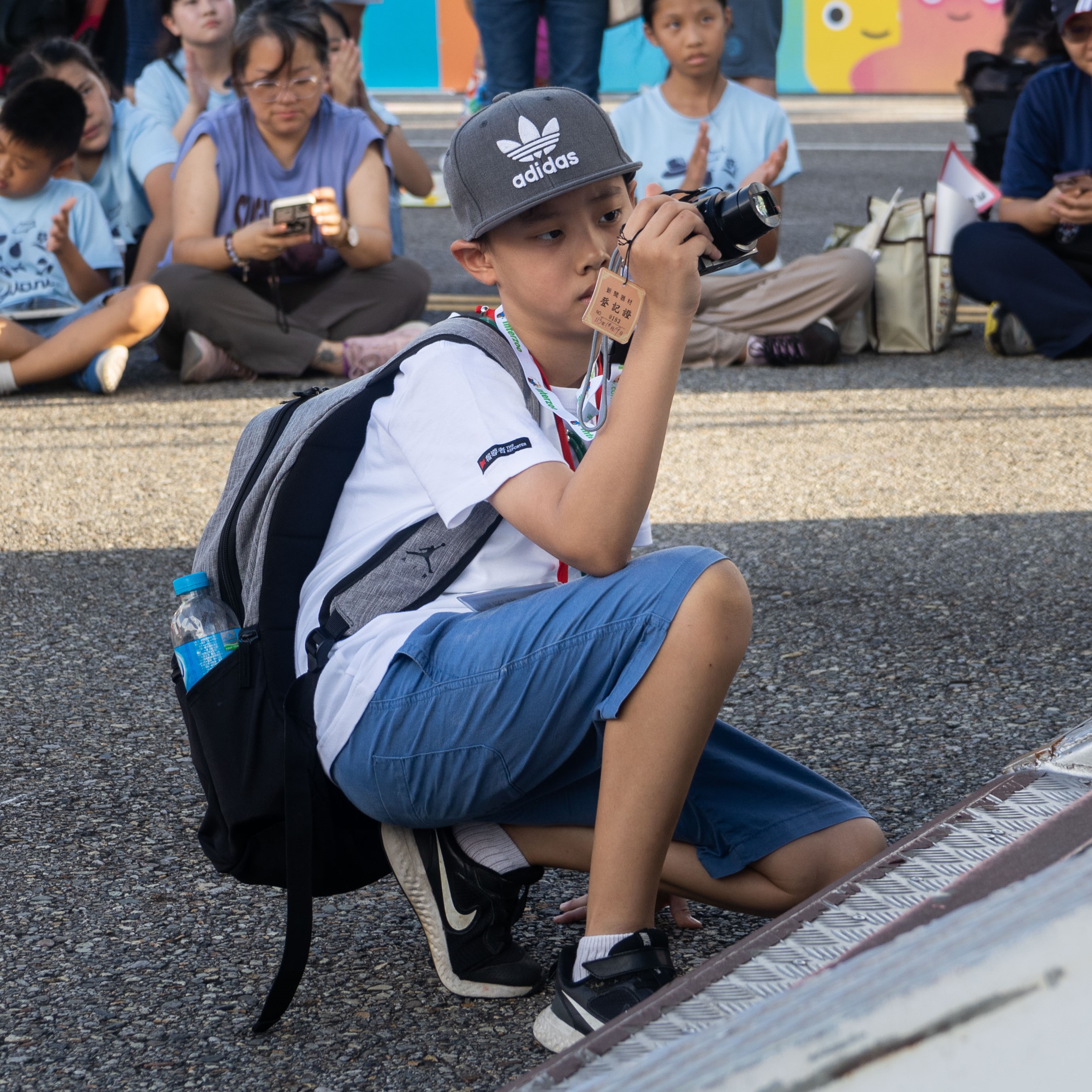 其實拍攝好像很簡單,按快門對焦,就可以拍到想要的畫面,困難的卻是要在大太陽下奔波,只為了捕捉一個想要的畫面。雖然站了一整天腳非常痠,但因為在凱道上難得有這麼多小朋友,可以盡情表達及玩樂,讓大家大解放,是個很好的體驗。
