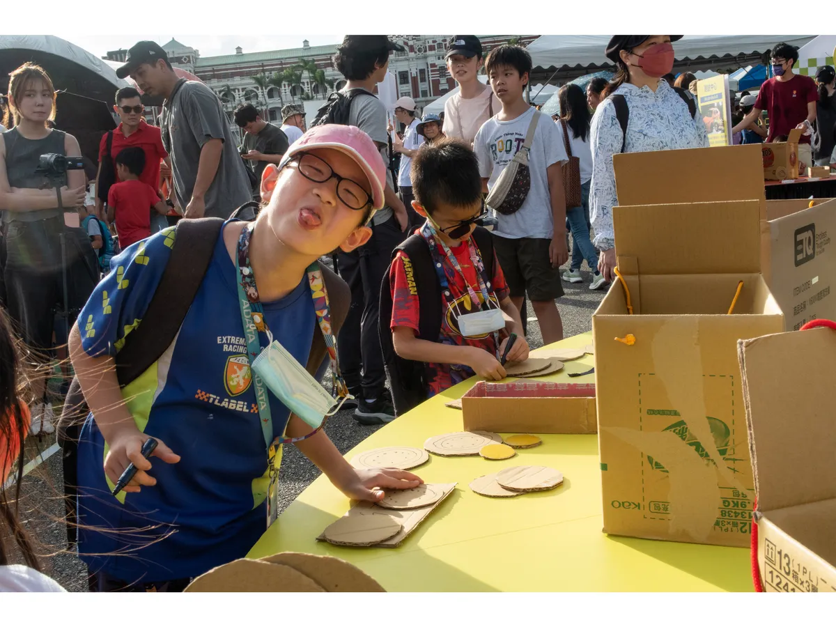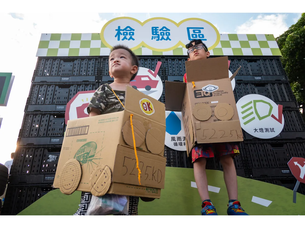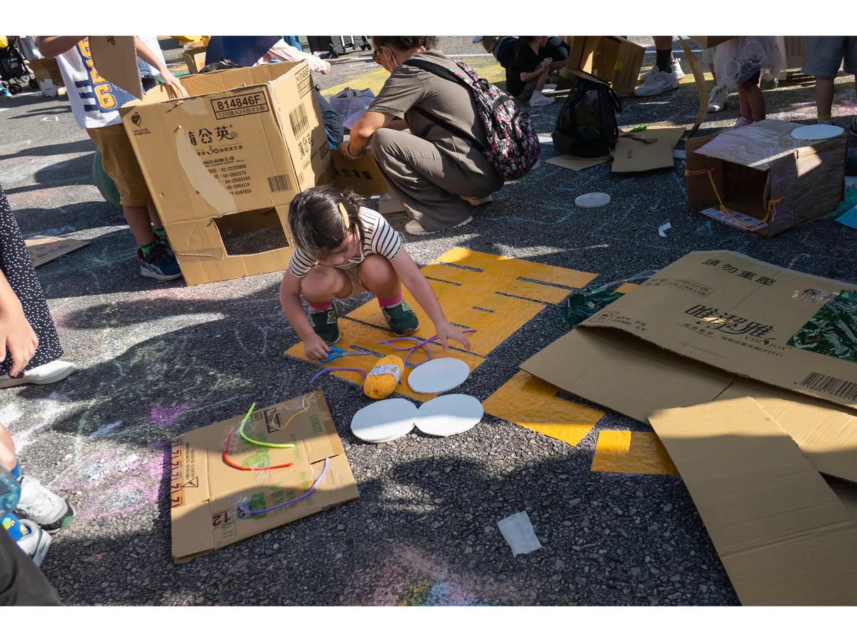 在汽車未來工廠,小記者把焦點放在孩子利用紙箱製作汽車、妝點汽車的過程,每個環節都是孩子發揮創意的時刻,小記者們捕捉到這些孩子專注玩樂的瞬間。