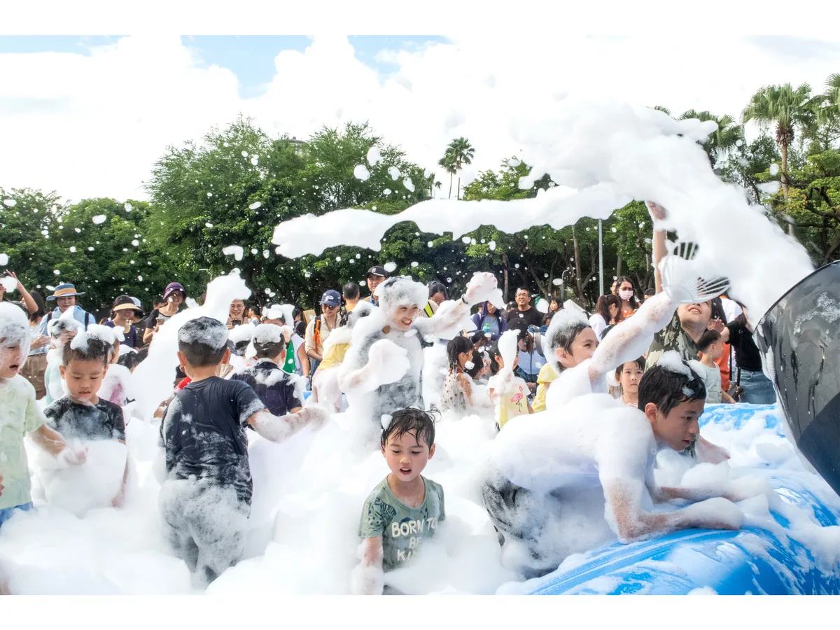 最讓我印象深刻的是凱道上有一個很大的泡泡池,有位叔叔拿著像是大砲,不斷向池中吹出泡泡,而在池中的所有小朋友滿身泡泡,很開心地玩,很自由,看到他們表情,讓我也很想跳進去玩。