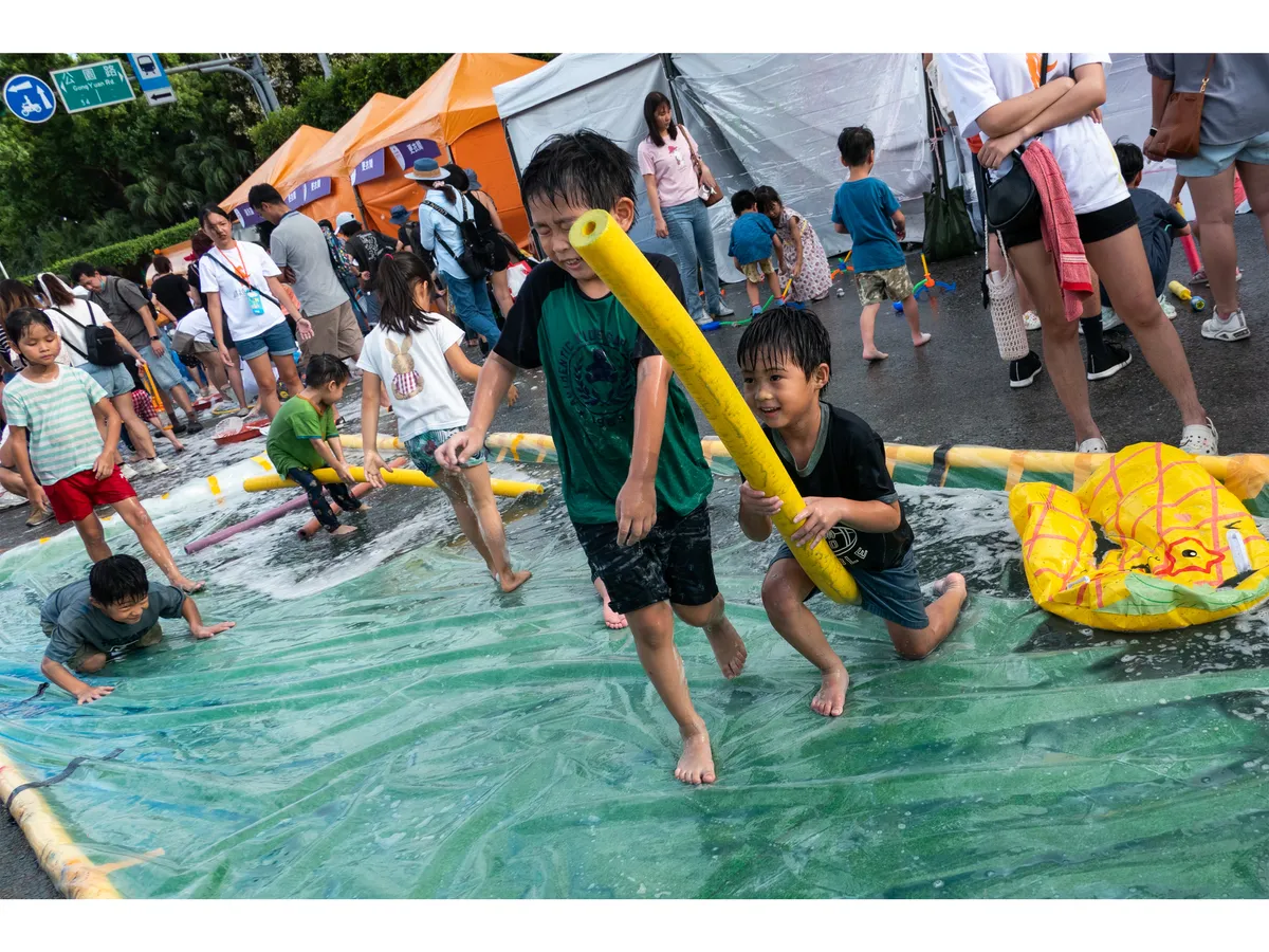 在現場的小朋友可說是非常縱情地用「遊戲」在對抗馬路,不只要按照自己的方式玩,更要在寬敞、無車的大街上玩!