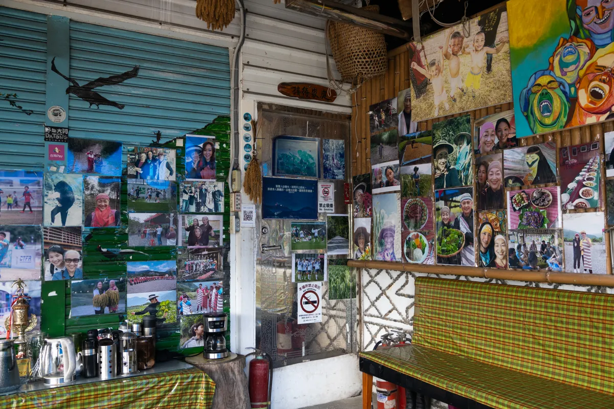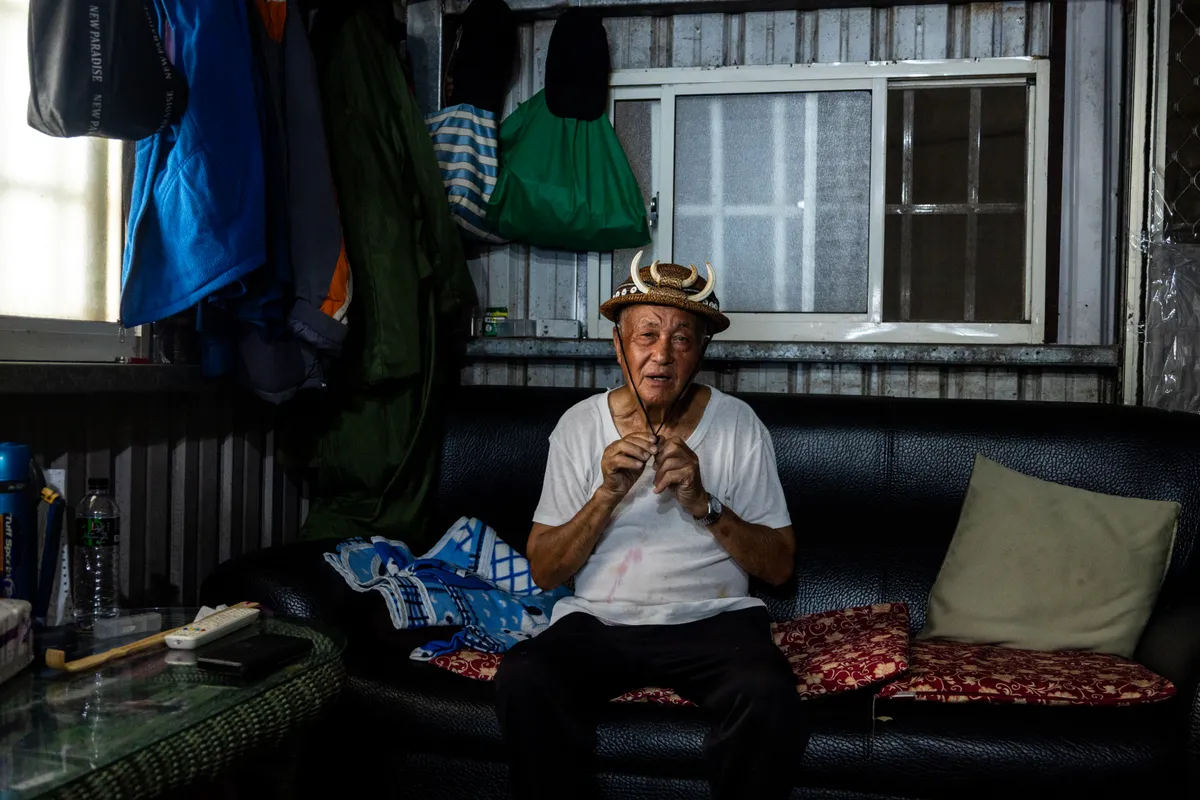根據戶政統計,這個人口外流的高齡山村約有478人(截至2025年6月),許多為年邁長者。耆老Dana Yumin坐在昏暗的「谷慕哈勇雜貨店」,餅乾、飲料與日用品整齊排放,玻璃櫃上陳列著他親手編織、鑲嵌山豬牙的三頂帽子,那是他年輕時在獵場上的戰利品。