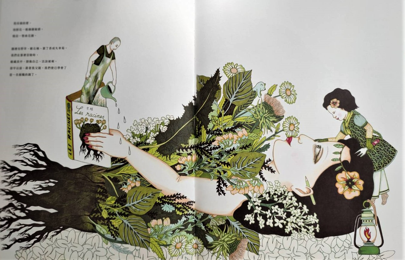 同樣以母女為題,法國作家史帝芬.塞凡(Stéphane Servant)的《有時母親,有時自己》描繪媽媽處在家庭與自己兩端,以強烈震撼的畫面展現母女之間的相繫與羈絆。在花草叢林的世界中,母親既像戰士,會哭、會怒吼、也會受傷,她也是一座需要家人對她悉心灌溉的花園,在家庭與她個人的人生中,自由的綻放。媽媽不一定要力求完美,在傳統與現實的掙扎下,她是需要勇敢的。