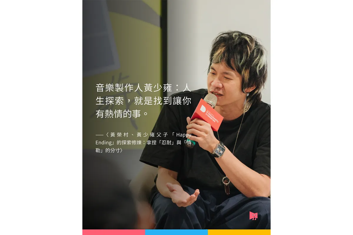 黃少雍說:「人生探索,就是找到讓你有熱情的事,靈感也是生活的累積,缺一不可。」他從生物化學跨到音樂製作、DJ,沒有預先設計,這讓他學會保持敏銳、把握機會。但他也提醒:「不要點錯天賦的技能,找到適合自己的,就全力以赴。」
