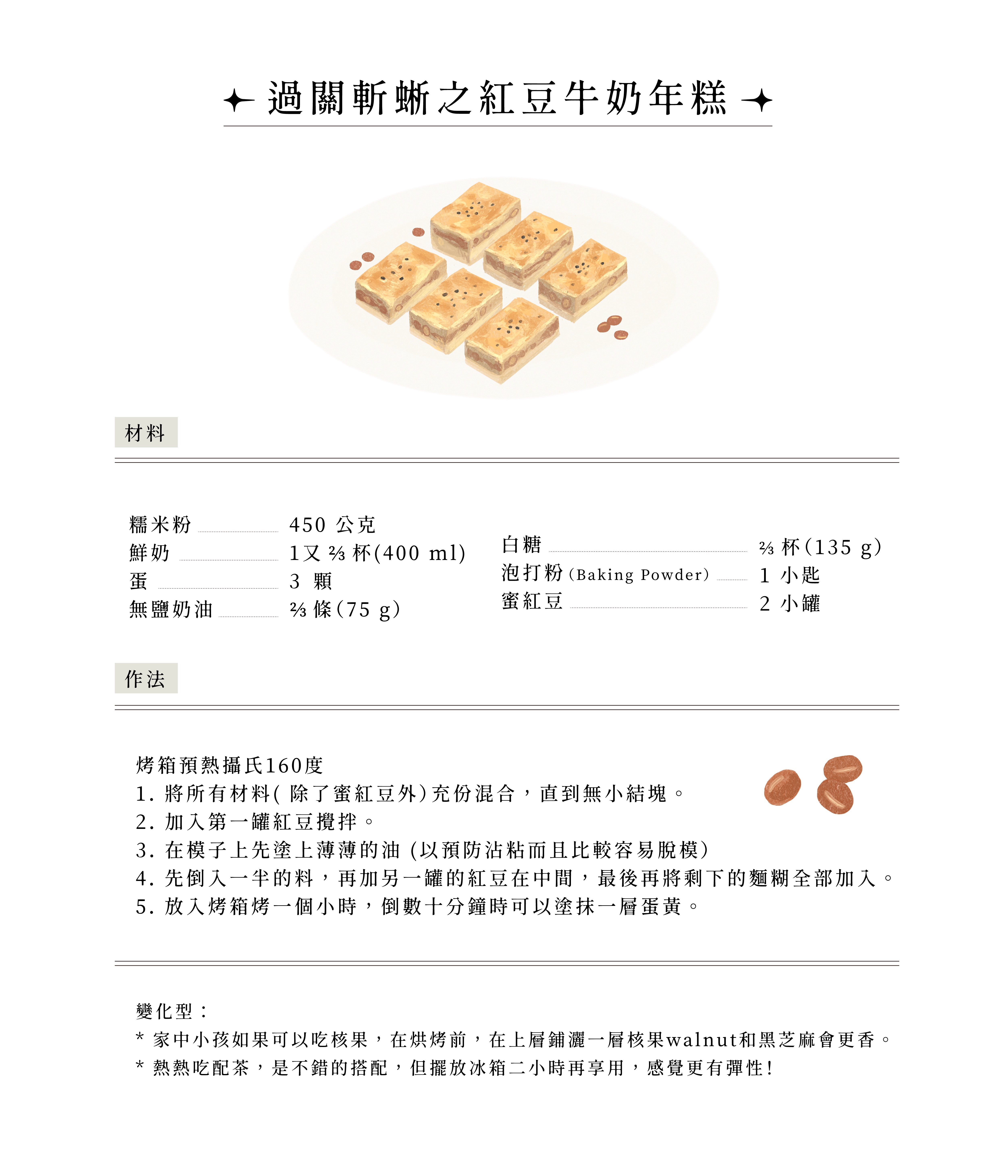 除了紅豆湯,文末決定加碼附贈我家20年來冬季必吃的甜點「紅豆牛奶年糕」,透過這道菜甚至還在日本人的僑胞社團造成過一股熱潮呢!今天就在這微涼時分,讓我們好好享受紅豆好滋味。