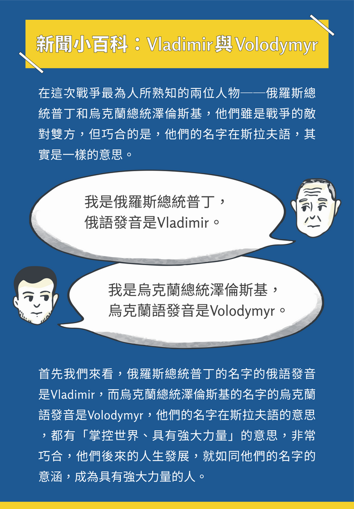 令人敬佩的國家,是因為有令人敬佩的人民。烏克蘭人民展現英勇抗俄的堅定意志,他們不但為保衛家園而戰,也為了確保他們的民主自由,不被威權專制的俄羅斯總統普丁(Vladimir Putin)踐踏而戰。衷心祈求上蒼憐憫烏克蘭人民,讓和平的曙光,早日降臨。誠如烏國總統澤倫斯基(Volodymyr Zelenskiy)所說,光明將戰勝黑暗,烏克蘭將會蓋起全新房子,也將建立新的城市,與此同時,烏國將編織新的夢想,也將撰寫新的故事。