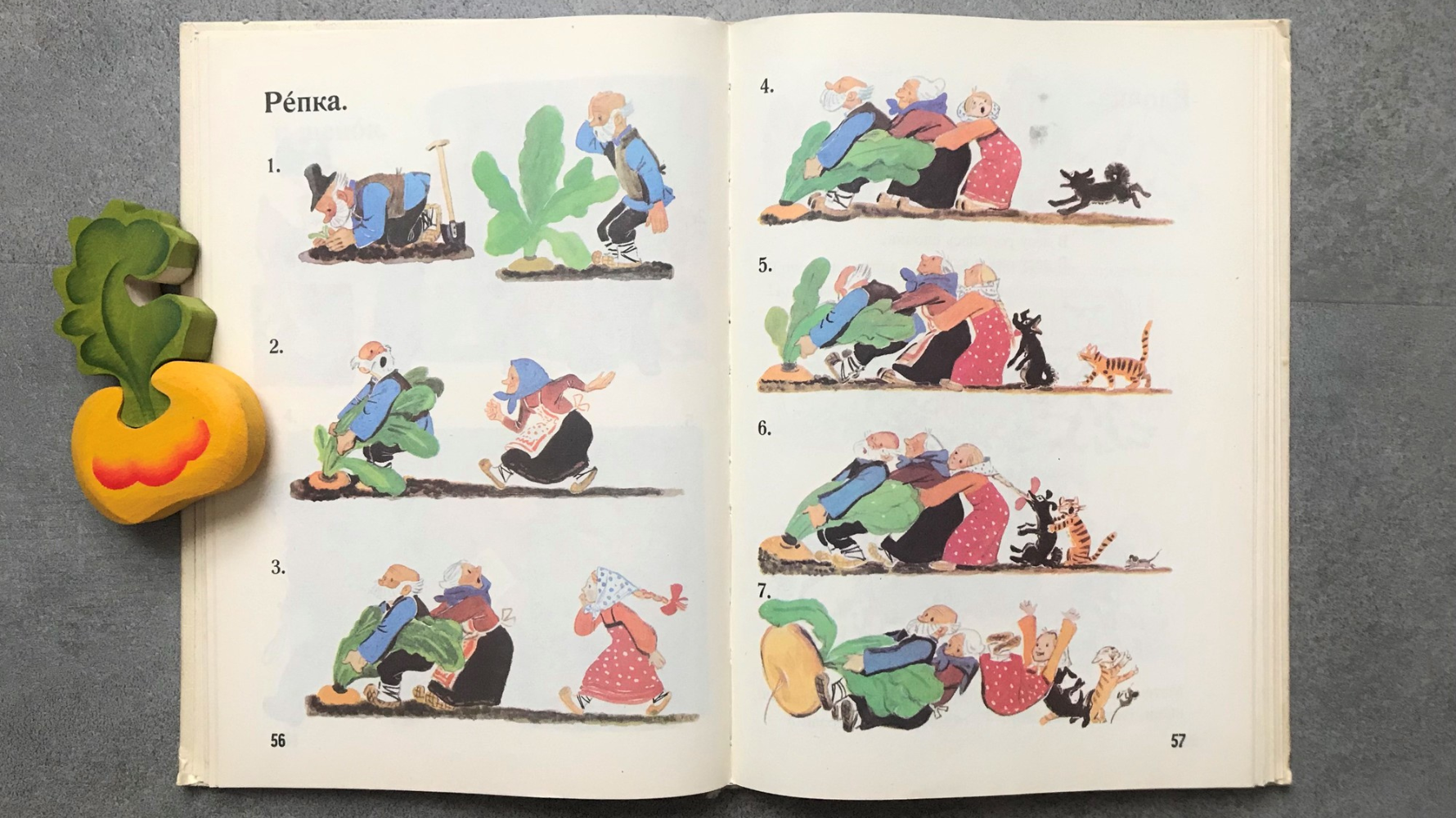 「拔蘿蔔,拔蘿蔔,嘿喲嘿喲拔蘿蔔」這首琅琅上口的兒歌,沒想到它其實是來自俄羅斯的民間故事吧?《拔蘿蔔》最早出現在19世紀中期,收錄在與格林兄弟齊名的亞歷山大.阿法納西耶夫(Alexander Afanasyev)收集的俄羅斯民間故事集中,後來經過多次改寫,在世界上廣為流傳,其中以俄國作家阿列克謝.托爾斯泰(Aleksei Tolstoy)的版本最為知名,也曾被收入蘇聯一年級的國語課本,可見其代表性。