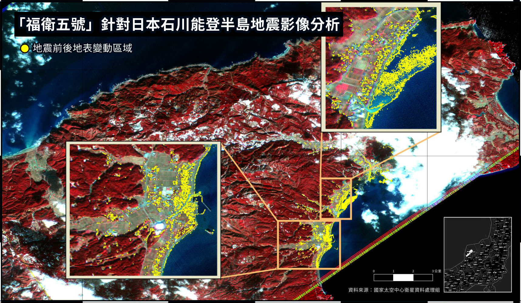 「福衛五號」針對日本石川能登半島地震影像分析(原始出處/國家太空中心;設計/江世民)