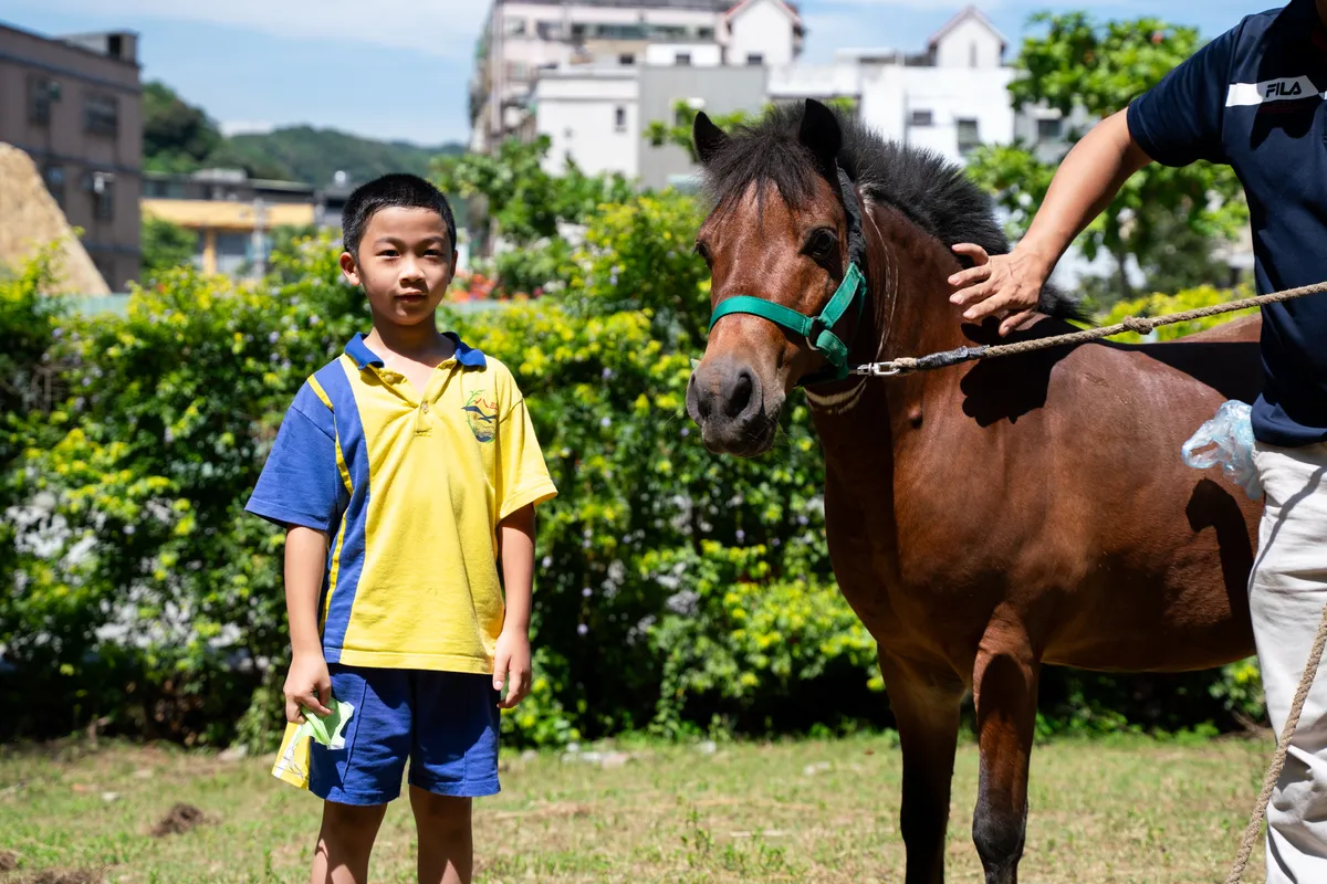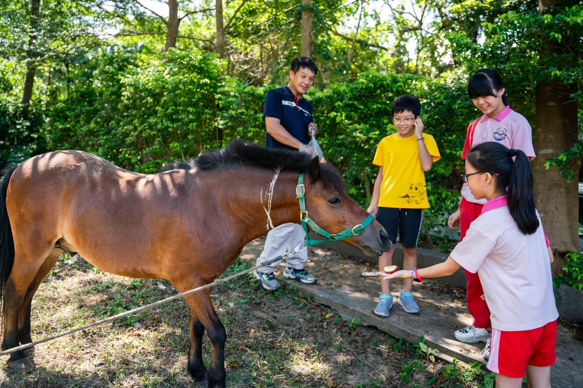 除此之外,我們也利用高年級的校外教學活動,安排學生參訪馬場,透過與馬匹互動的體驗式學習,從牽馬、騎乘馬匹的過程中,了解如何與馬匹建立互信關係,有助學生培養觀察力、溝通領導能力,更重要的是,學習尊重各種生命。
