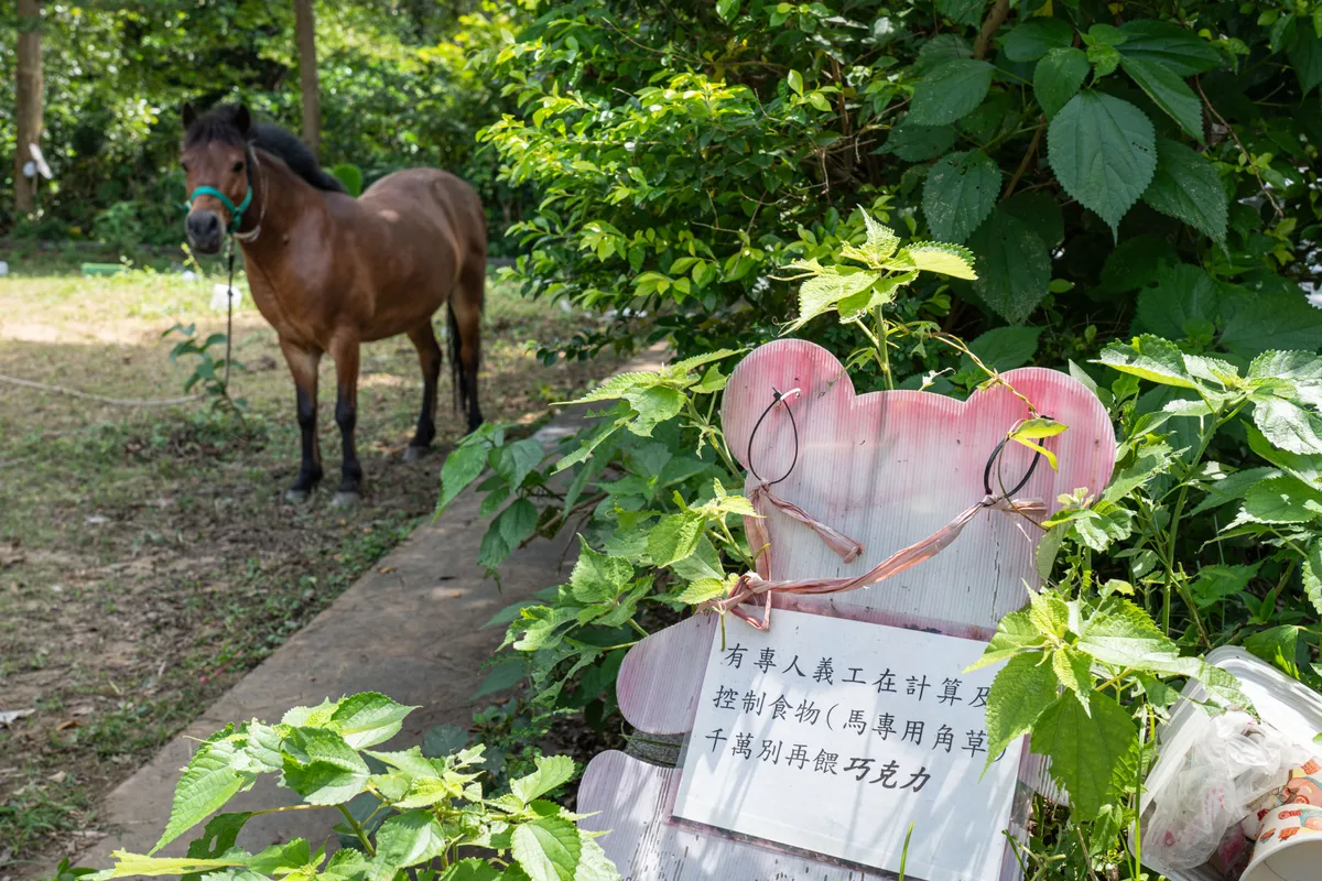 但其實我還滿喜歡淋雨的,明明馬舍有屋簷,下雨時我會故意走出馬舍被雨淋;至於馬舍前的雜草,是因為我只挑喜歡的草吃,不愛吃的草,當然就變成雜草叢生;為了怕野外蚊蟲多,學校也幫我準備了蚊香,每天還有志工幫我清理馬舍,把我的排泄物拿去當堆肥,每半年還有獸醫來幫我做定期的健康檢查,所以請大家不用太擔心我的生活環境喔!