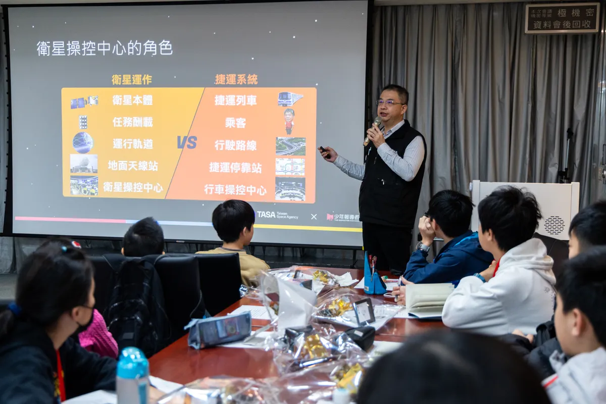 國家太空中心教育辦公室總監鄭琮生除了向小記者介紹太空中心的任務,也先為小記者上了一堂太空科普課,解釋「太空怎麼定義?」、「太空有法律嗎?」帶給同學們對台灣太空科學發展的信心。他提到,台灣的太空產業綜合實力在全球200多國中排名第13至15名,「不要輕看台灣,」鼓勵有興趣的年輕世代能投入太空領域。
