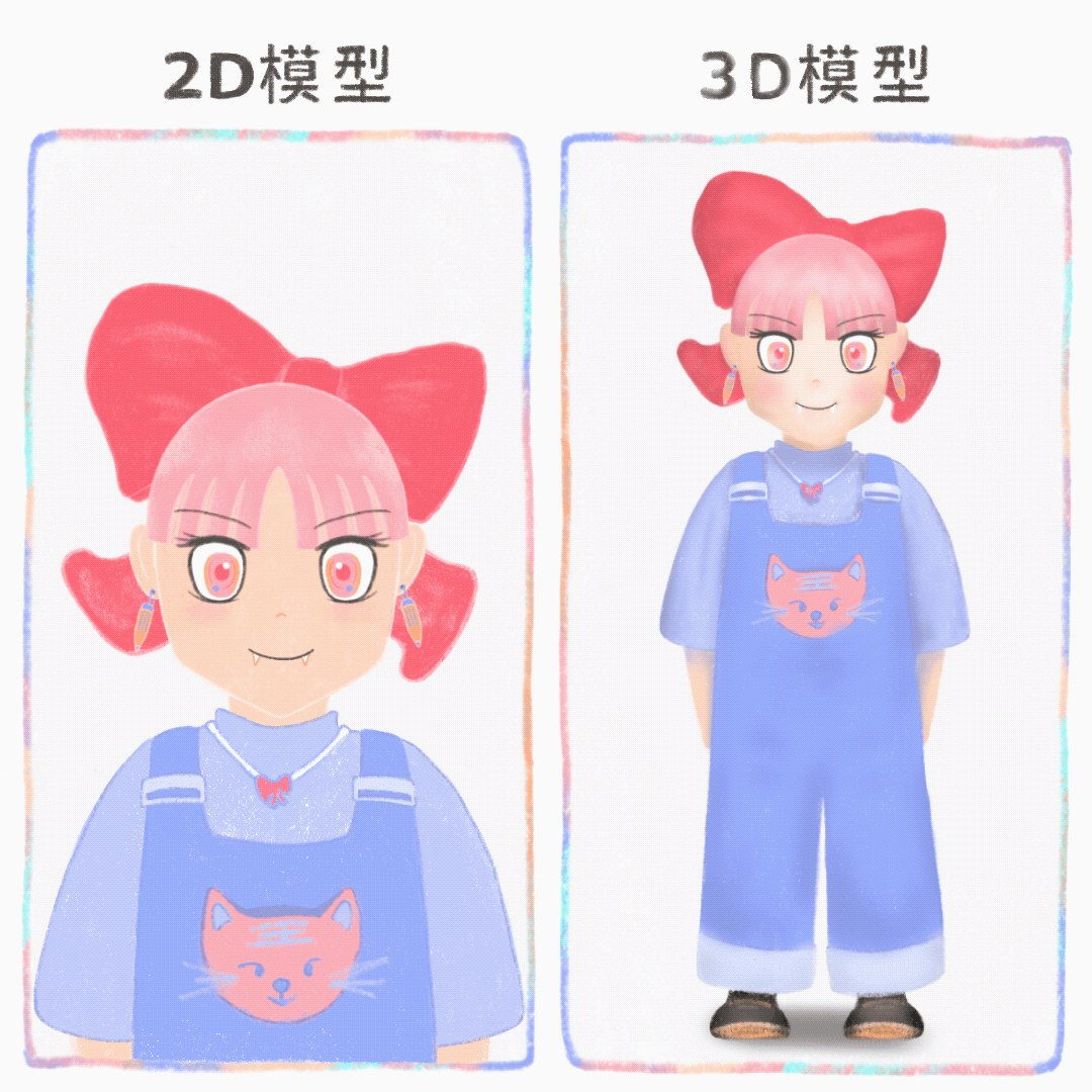完成角色的平面草稿後,透過Live2D等動畫軟體的設定,為角色加上分層設計與動作設定。當中之人轉頭、眨眼、說話時,VTuber有對應的動作,呈現出立體感與生命力。