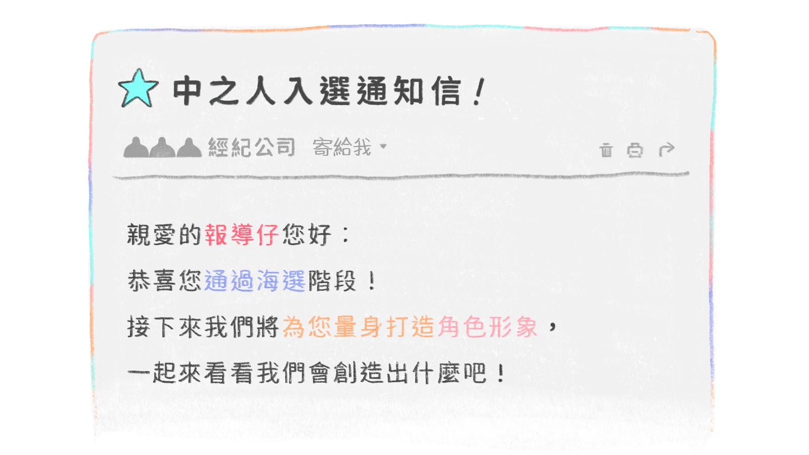 從素人變身虛擬偶像,春魚創意創辦人陳善清認為,中之人本身的性格與才藝缺一不可。他以VTuber男團「諦覓司Timaeus」徵選為例,經紀公司有意識地挑選偶像團體組成的多元性,以及成員之間的配合度。徵選過程中,安排應徵者組隊打遊戲,並要求前來應徵者進行角色扮演,看看他們是否可以演繹出小火龍、妙蛙種子、傑尼龜跟皮卡丘等寶可夢的角色,藉此讓評審觀察應徵者的表現。
