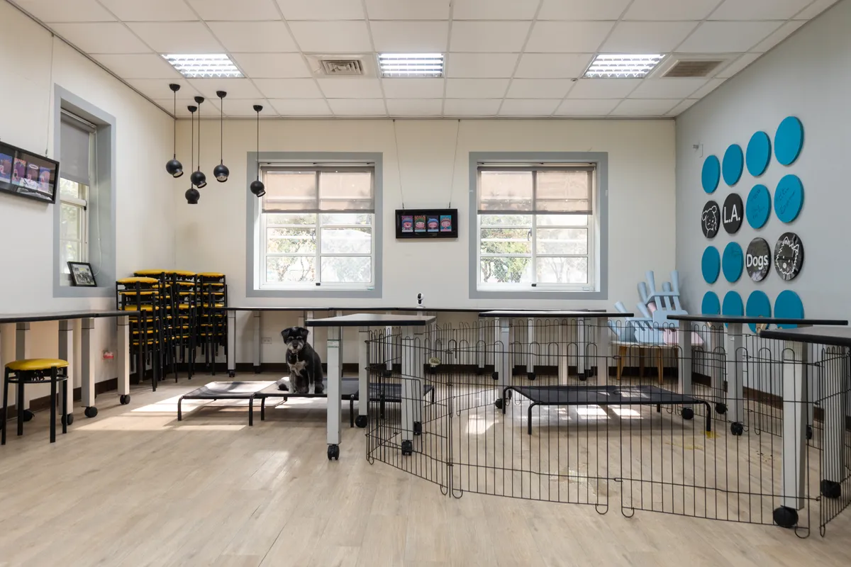 除此之外,學習輔助犬都會接受一系列「社會化」訓練,讓牠們在服務現場維持穩定的情緒和專注力。一般來說,狗狗們的專注力大約落在10~15分鐘,因此單一活動通常不會超過15分鐘;狗狗們也會在每天的中午12點和下午2點,透過「服從五訓練」建立與領犬員的合作關係。