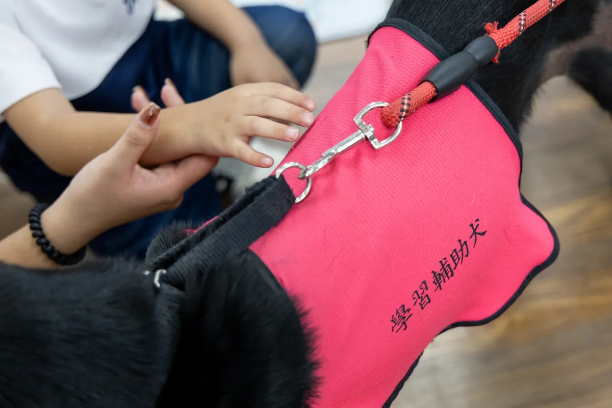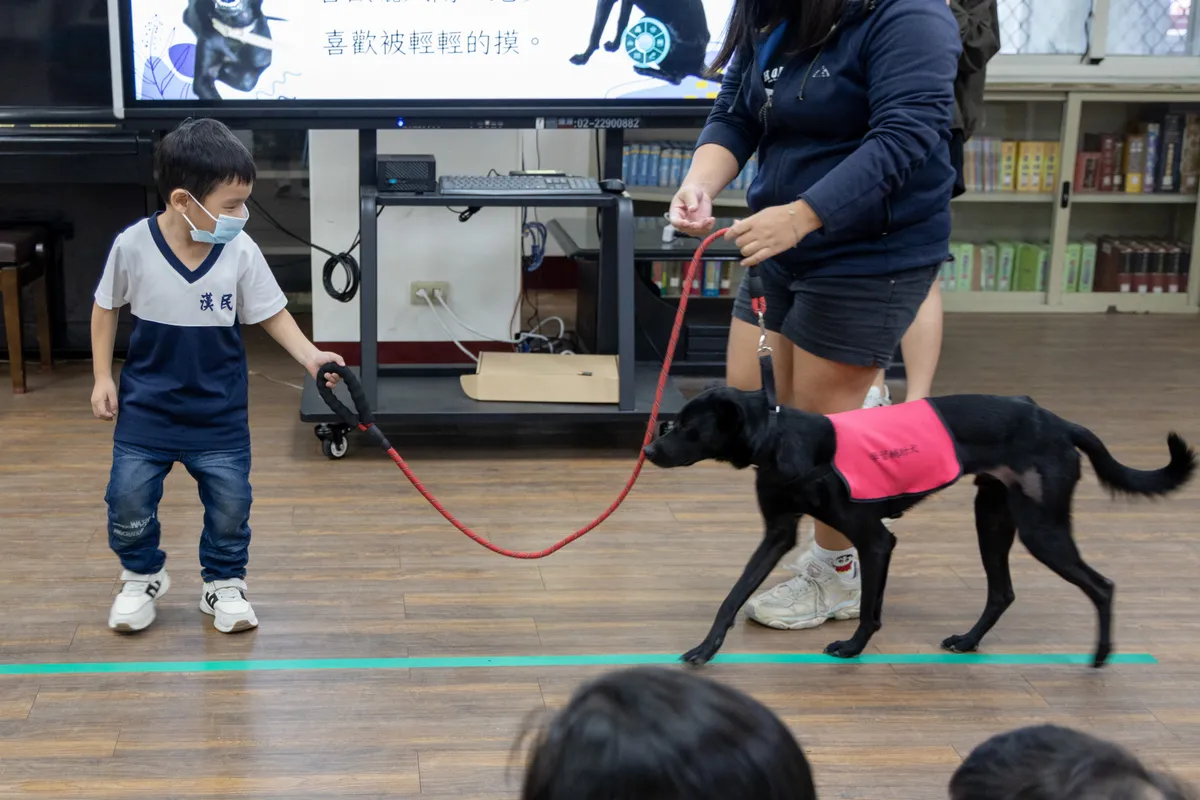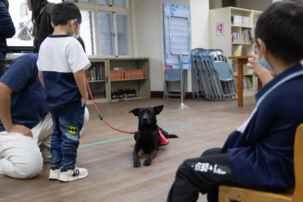 「但你看狗狗,就是一張很無辜的臉,」李立心說,她會跟孩子們介紹,今天有一位「長得不一樣」的老師會一起上課,就算念錯了,這位狗狗老師也不會批評,偶爾還會搖搖尾巴,孩子們甚至會覺得「牠好像真的很懂我」。