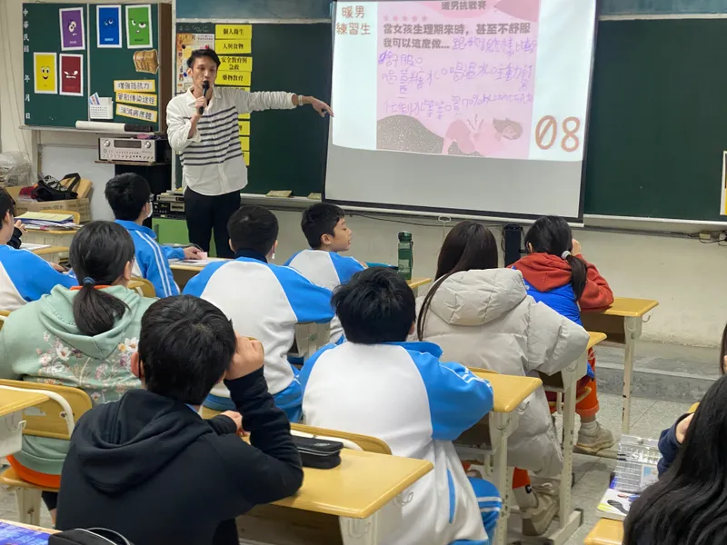 台北市瑠公國中健康教育老師王君豪,透過自身男性健康教育教師的角色,投入月經平權教育,更設計趣味的「暖男挑戰賽」,讓月經議題成為學生在課後持續討論的焦點!